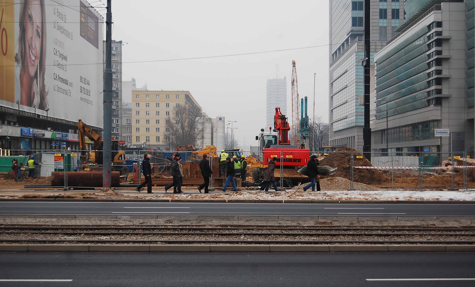 Above: looking north along Al. Jana Pawła II at what used to be a very busy roundabout (Rondo ONZ) - with ul. Prosta running off west towards Wola (to the left of the pic) and Świętokrzyska running east towards the Vistula (to the right). Note the remnants of the tram tracks in the roadway. Sometime towards the end of 2013 (if all goes to schedule) this will be the site of Rondo ONZ Metro station. What will happen with ul. Świętokrzyska - will it be pedestrianised? I do hope so.It will be interesting to return to these pictures in a few years time and see how things have changed. In the meanwhile, Google Earth users - cut and paste these coordinates into the 'Fly to' box (52°13'59.32"N, 20°59'53.93"E) to see how Rondo ONZ looked before the work started (current satellite pic from April 2009).